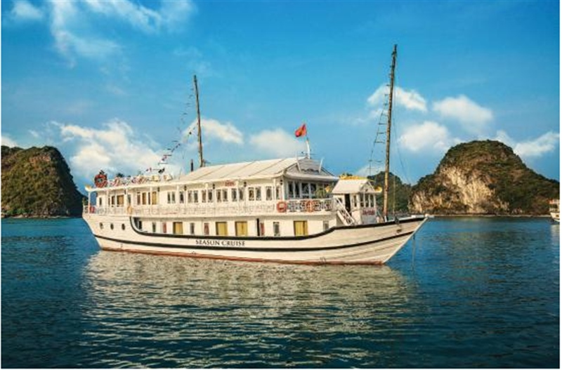 12:00: Arrive Ha Long Bay, transfer by tender to the Seasun cruise, and enjoy welcome drinks. Check in your cabin and enjoy a real Vietnamese lunch while beginning your sail through the fairy land of Ha Long bay, passing by Stone Dog islet, Incense Burner islet, Fighting Cocks, Swan islet, and Duck islet…